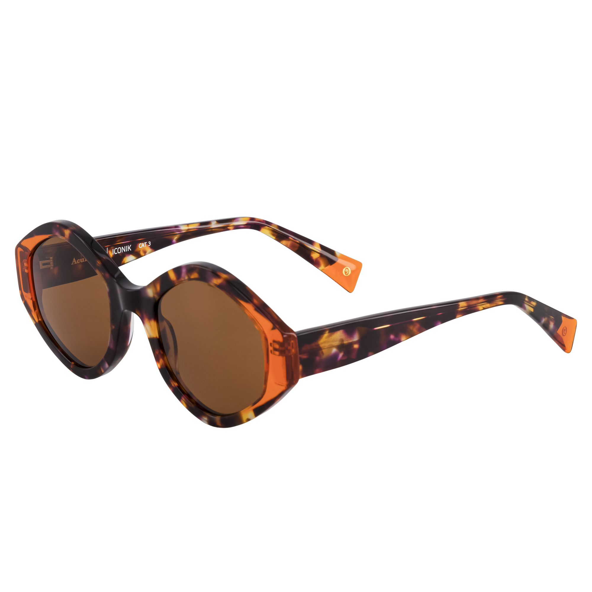 Monture solaire oversize à la géométrie affirmée. Le jeu de laminations colorées entre plaques translucides et écailles teintées crée un effet matière raffiné. Une esthétique au...