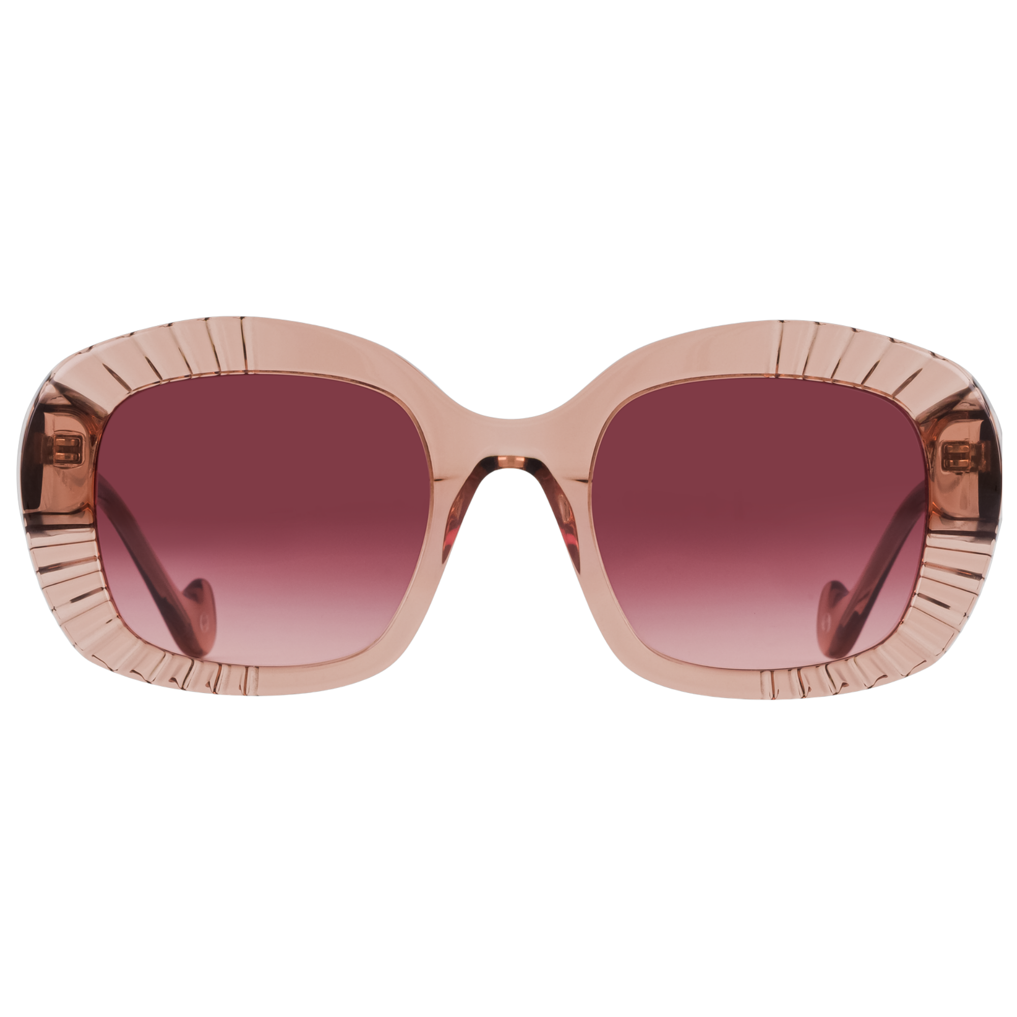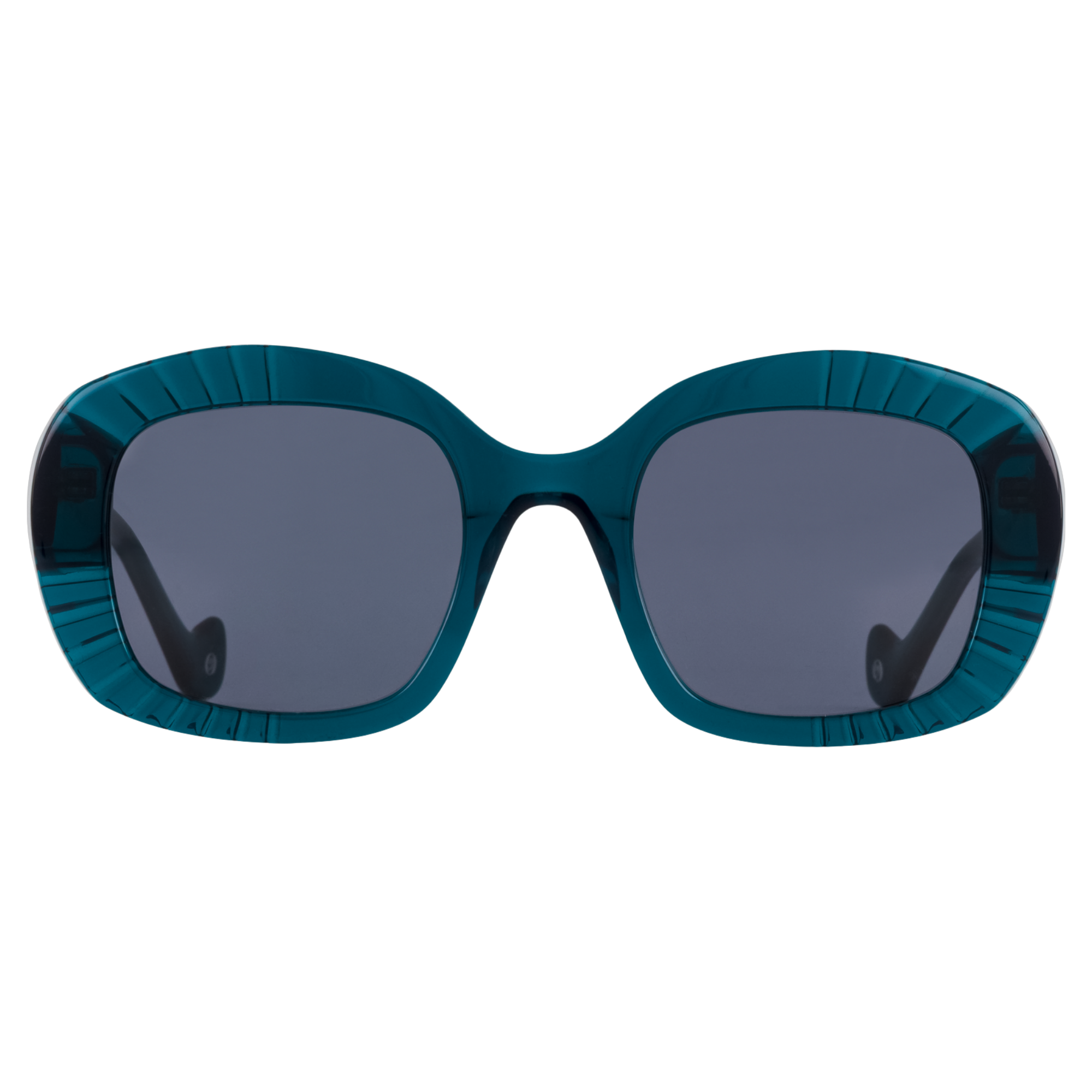 Monture carrée en acétate aux lignes affirmées et structurées. Son volume généreux est enrichi au revers de motifs circulaires en déforçage qui captent la lumière et mettent en ...